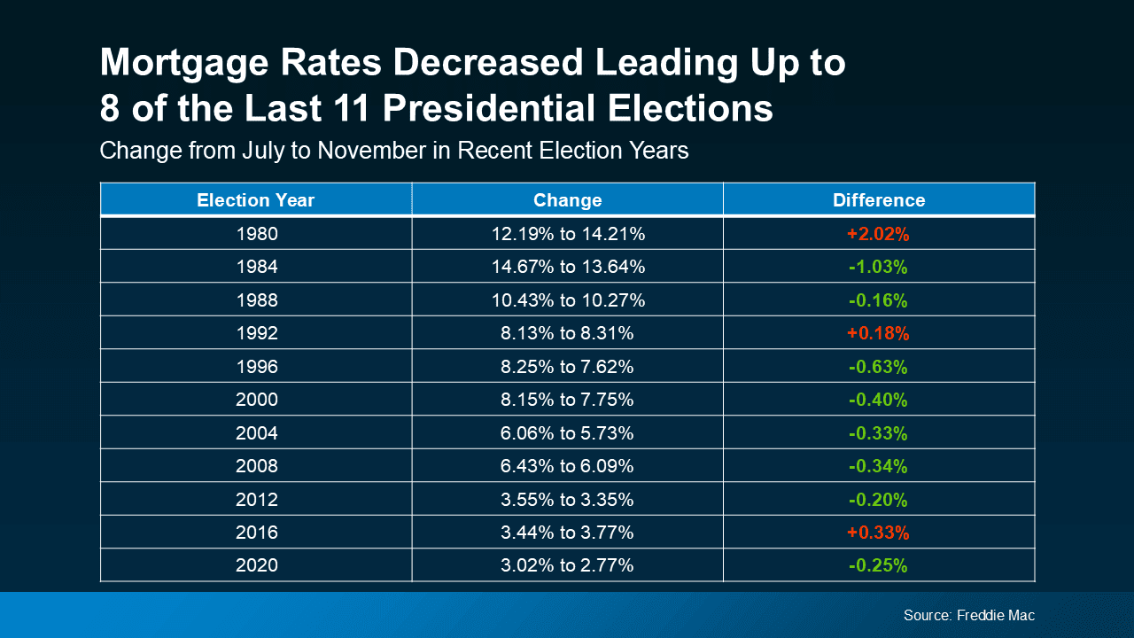 Here’s a look at decades of data that shows exactly what’s happened to home sales, prices, and mortgage rates in previous Presidential election cycles, so you can move forward with the facts as you weigh the pros and cons of your homeownership decision.